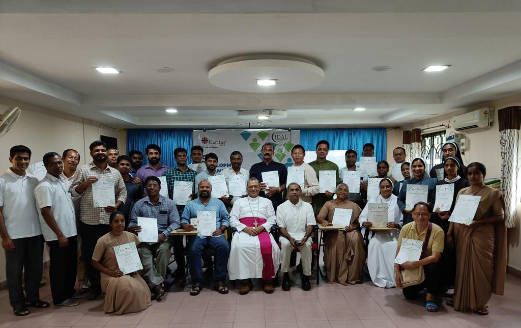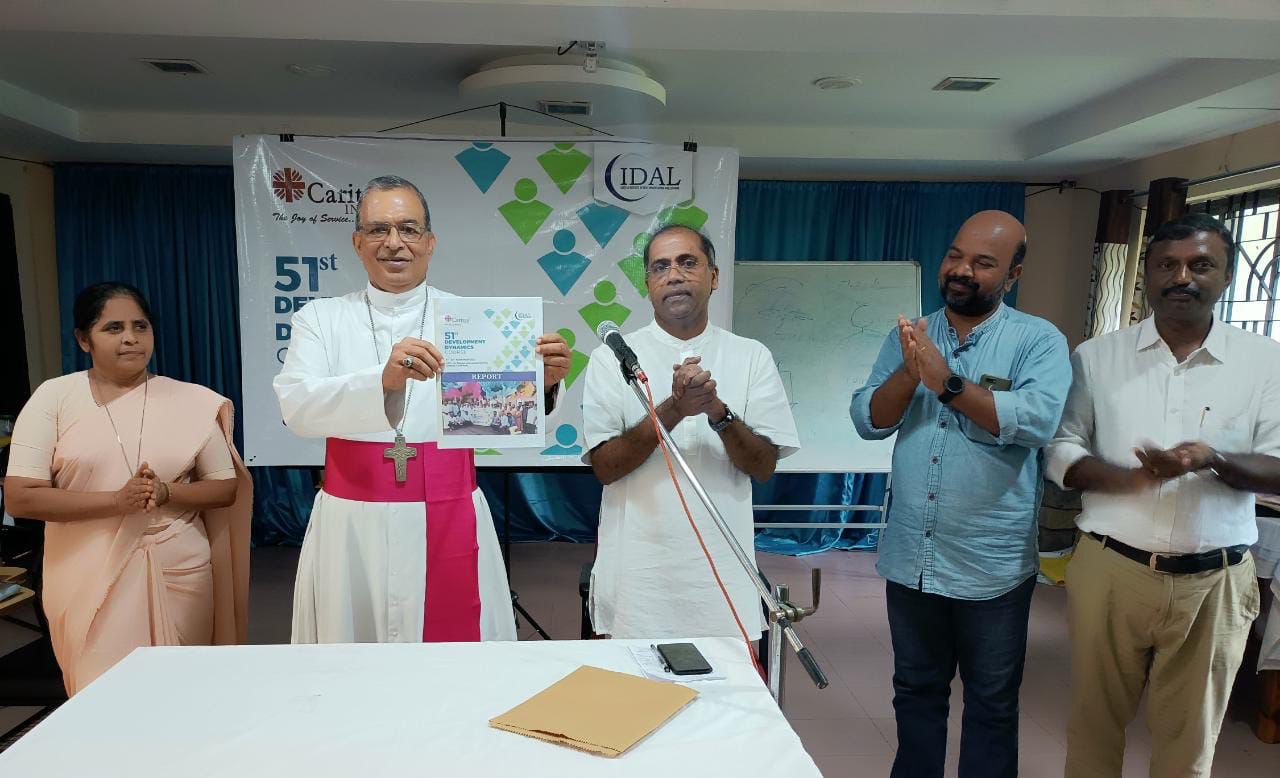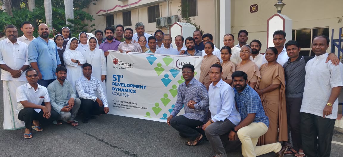 The 17 days long Development Dynamic Course (DDC) was conducted on November 24, 2021, under the banner of the Caritas Institute of Development Action and Learning (CIDAL) at DMI St. Thomas International Centre, Chennai. The valedictory session was attended by Bishop Mar Sebastian Pozholiparambil of Hosur and Fr. (Dr.) Paul Moonjely, Executive Director, Caritas India. Bishop Mar Sebastian Pozholiparambil also release the report of the course during the session.