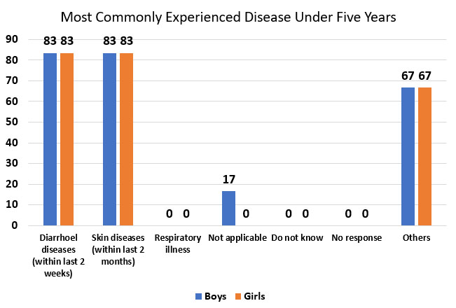 83% of the surveyed population does not use soap to wash their hands. Washing hands with water alone is not enough to get rid of microscopic bacteria. This puts more than half the population in the surveyed areas at risk of diarrheal diseases.