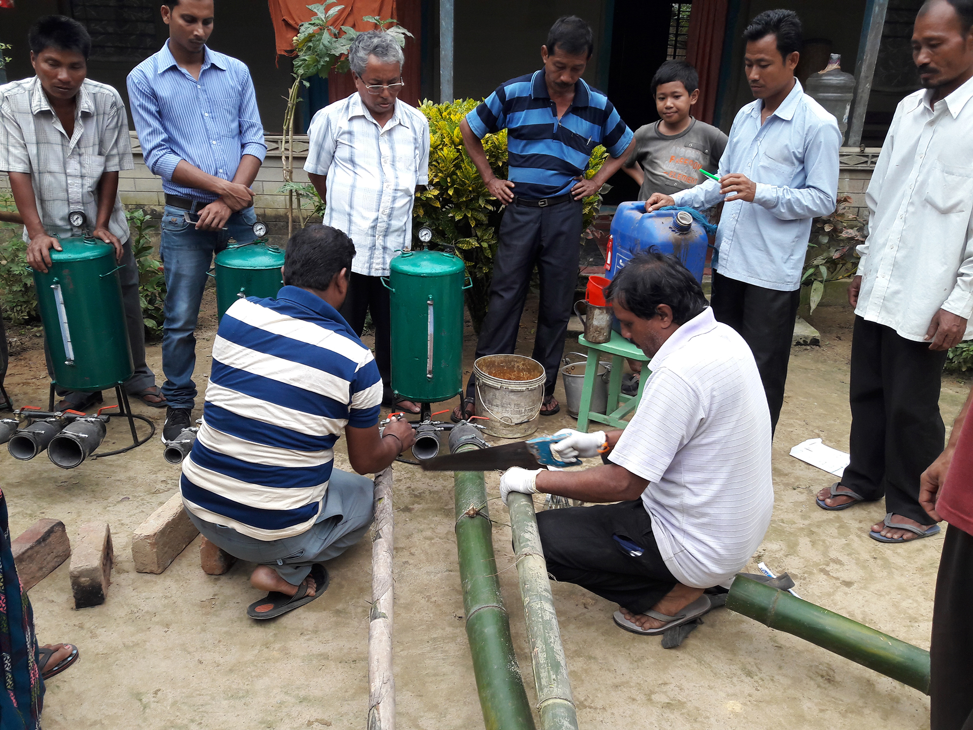 The treatment enhances the durability of the bamboo and keeps it stronger for at least 70-80 years that too without any maintenance. The treated bamboo remains free of any pest attacks especially termites. Such houses are also earthquake resilient. The community members were given the opportunity to interact with the experts and get hands-on demonstration for treatment of bamboos.