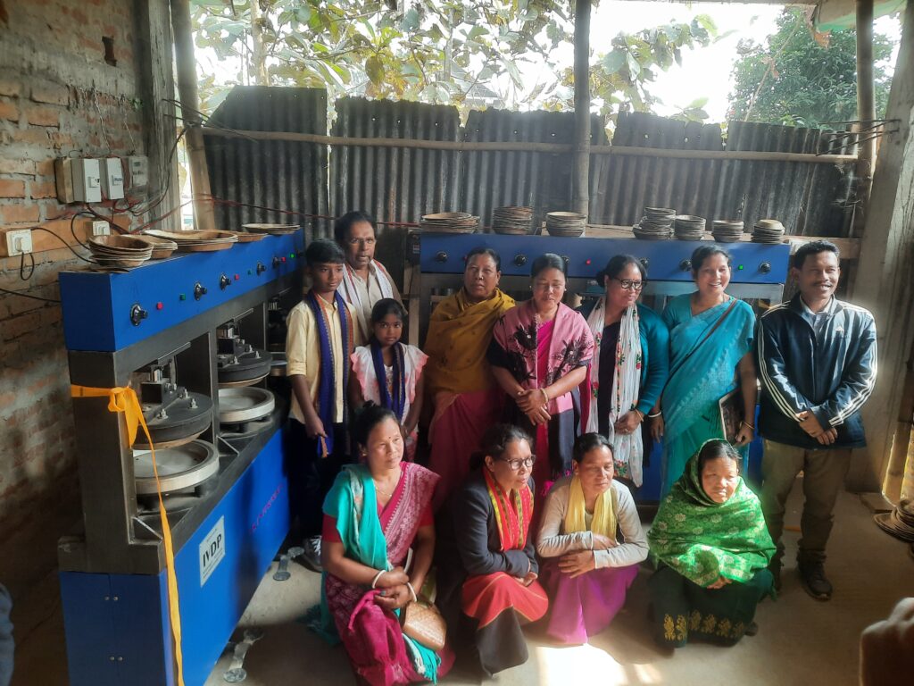 In December 2023, with the support of Caritas India and the Just Organization (JUST), Mr. Debbarma acquired the Areca leaf plate-making machine. This initiative not only provided him with a new livelihood avenue but also served as a model for other farmers in his community. Caritas India’s support extended beyond just providing the machine; they facilitated connections with suppliers and potential customers, addressing the critical issue of unstable markets that often discourages farmers from exploring new ventures.