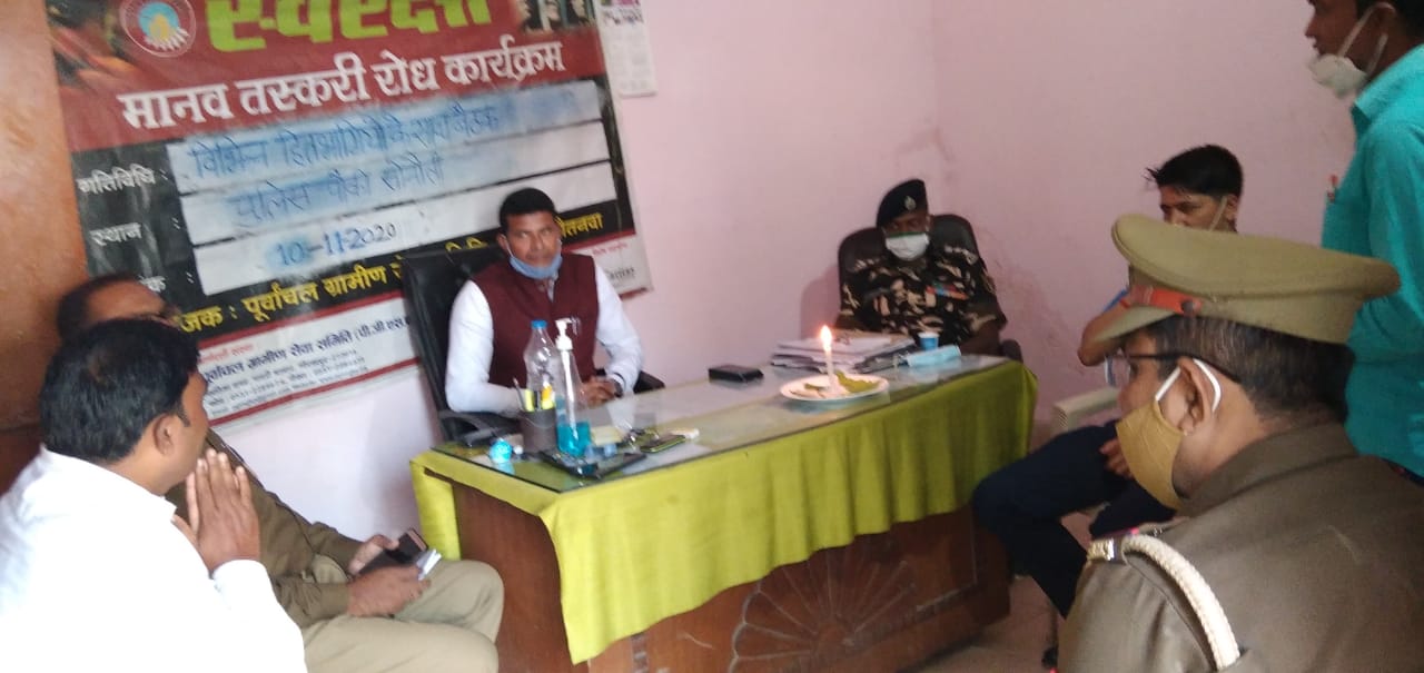 During the closure border forces with the help of Swaraksha AHT Program team rescued the victims of Human trafficking from the hands of perpetrators who were trying to cross the unguarded border to take these vulnerable people, luring them for work in metro cities. It is a kind of Trafficking which is seen now during Covid-19 where vulnerable families are easily trapped by the traffickers who entice them for work and money. In this crucial situation, Purvanchal Gramin Sewa Samiti team was rigorously involved in organizing meeting with multi-stakeholders at the two borders of Indo-Nepal Sonauli and Toothibari. The objective behind these meetings was to invoke all the stakeholders for their collaboration against Trafficking at the border.