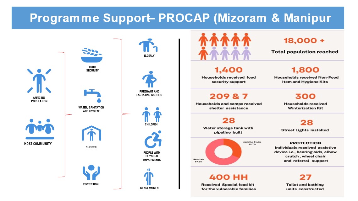Aizawl, the capital city of Mizoram, hosted the final event of PROCAP for the forcibly displayed population (FDPs) on March 27, 2023. PROCAP was initiated to respond to the humanitarian needs of the FDPs.