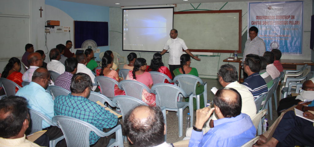 Tamil Nadu Social Service Society (TASOSS), the social arm of Tamil Nadu Bishops’ council took lead in organising workshop on the dissemination of ‘Key Strategic Pillars of Caritas India’. The Diocesan Directors and senior programme officers from 25 Diocesan Social Service Societies participated in this collective reflection on 11th and 12th January 2019 at Trichy. The Director of TASOSS, Fr.Albert Thambidurai said that this workshop will lead to developing clear perspectives at the regional level leading to Regional Perspective Plan which will be the consolidation of Diocesan Perspective Plans. They will be in alignment with the national plan of Caritas India with contextualisation.