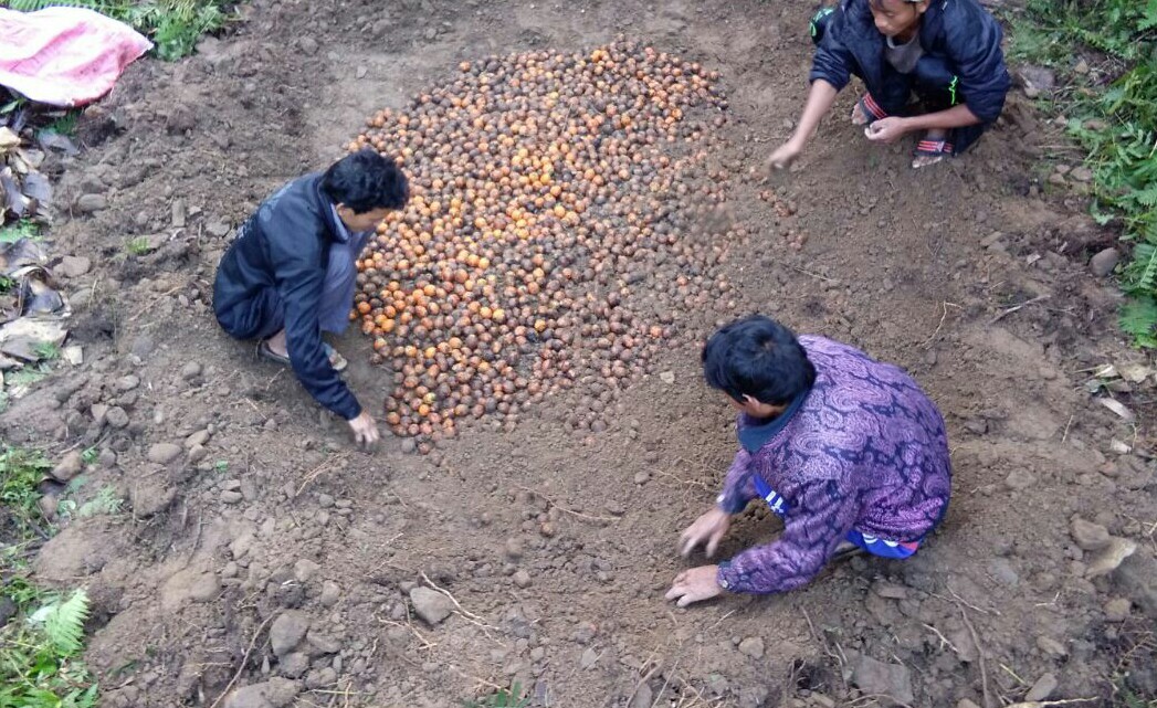 “A good quality seeds is always required to secure a good number of saplings”, says Milip Hanse a farmer. Farmers collectively worked support to one another in digging the ground, forming placing of seeds in an upright position closed to another seed and covering with a thin layer of soil and dry leaves and twigs. “To complete the whole process it takes six months,” says Mongol Hanse, Animator of Farm.