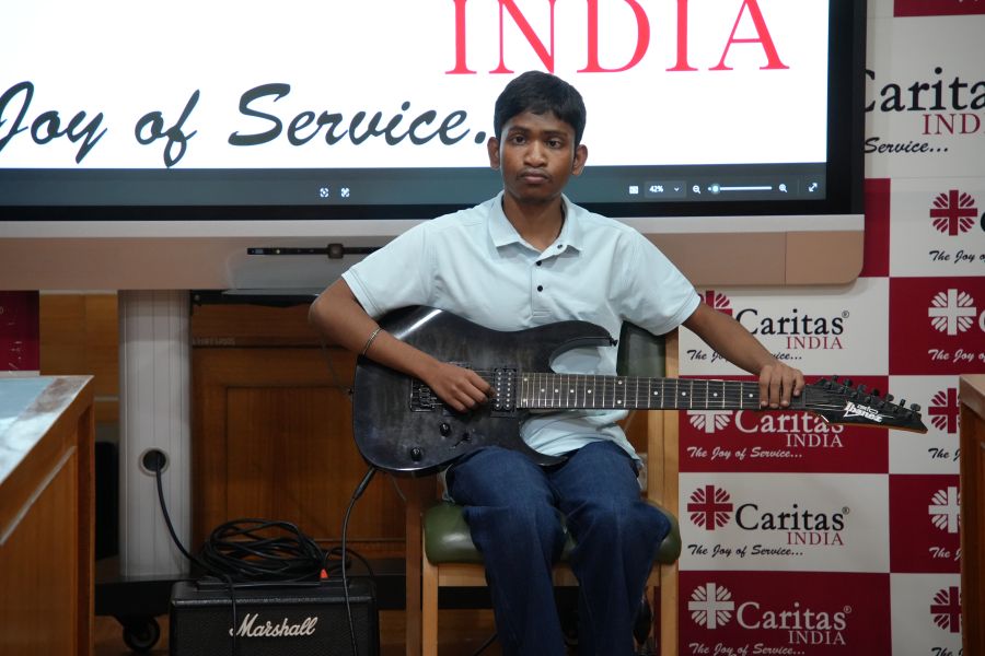 A special highlight of the visit was a musical performance by Mr. Ayush Jena, a visually impaired volunteer supporting the Chetna Campaign. His soulful guitar performance and heartfelt message to never give up, no matter the challenge, left the students deeply inspired.