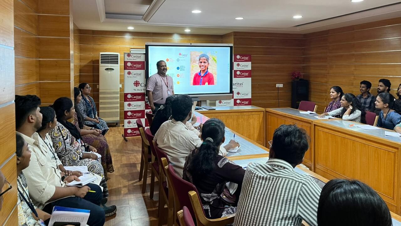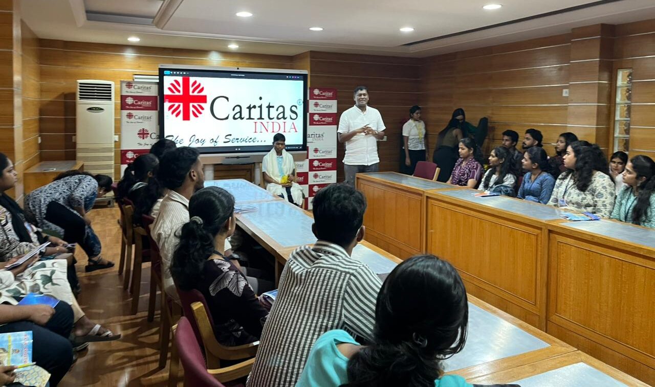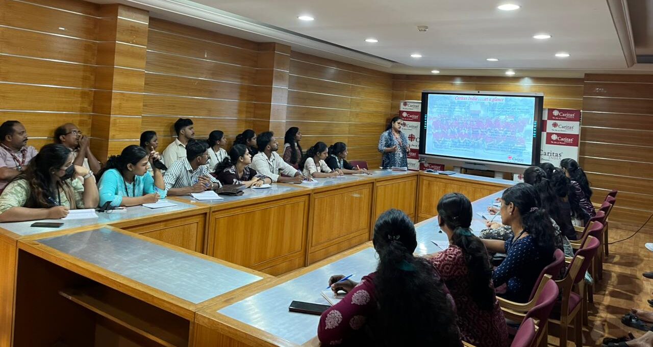The sessions opened with an introduction by Ms. Leena Abraham, Associate from Human Resources department, who walked the group through Caritas India’s legacy in the social sector. She explained the organisation’s vision, mission, and values, which form the backbone of its work across India. She elaborated on Caritas India’s major program areas, including humanitarian aid and disaster risk reduction, climate adaptive agriculture and food sovereignty, livelihood promotion, health and nutrition, anti-human trafficking, migration, child rights, and peace building. Each thematic area, she emphasised, reflects Caritas India’s core principles of compassion, participation, and empowerment.