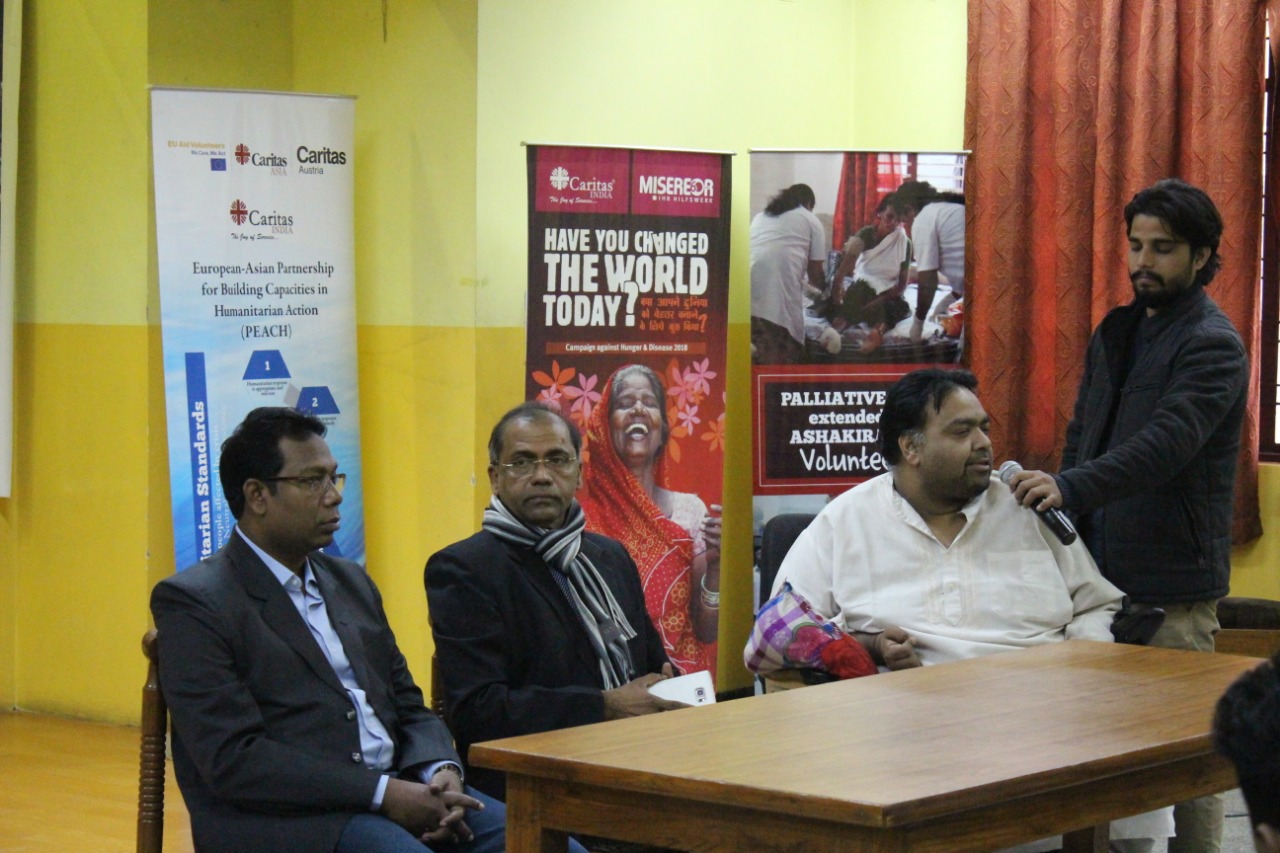 “Be a Caritas Volunteer” program saw participation from universities, institutions, churches of Delhi. In the honour of the event Mr Samuel Mani, Director, Yes We Can was invited as the Chief Guest. “Yes We Can” works with people with disabilities who are marginalised and from the underprivileged sections of the society through the medium of vibrant set of volunteers. Fr Paul Moonjely, Executive Director, Caritas India set the tone of the programme by motivating the participants to ponder upon how “each one of us spends our day, out which how many hours can one contribute in volunteering towards any cause”. He also elaborated on the volunteering works undertaken by Caritas India through programs like ASHAKIRNAM Campaign (Awareness campaign on Cancer in Kerala) and PEACH Program (Volunteer program for emergencies). Mr Samuel in his speech stressed on volunteering for people in need and elucidated with his own example on how being a differently abled person with limited mobility yet reaches out to the marginalised.