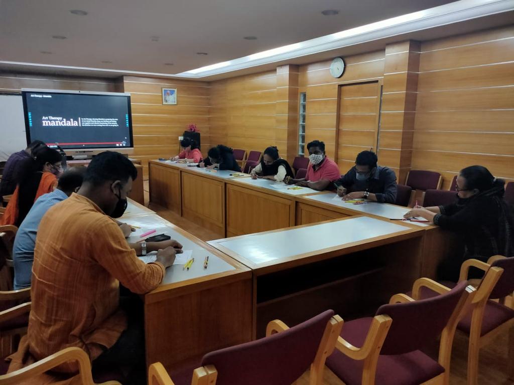 On the 04th Day, a simple act of colouring a picture can be quite beneficial in relieving stress and anxiety. One popular way to do this is to color mandalas and use it as a form of meditation. Art therapy is not about the end result but the process of achieving it. This spiritual circle will help promote mindfulness, focus attention, and promote healing. The repetitive process of coloring the geometric shapes within a mandala can be beneficial to people of all ages. Try to avoid the notion that coloring is just for kids. Instead, use it as a constructive way to find some quiet time to soothe your thoughts from any stress and anxiety you may be feeling. The relief you find may just surprise you. This therapy was used to involve the staff in the process of understanding the need of giving oneself a time of reflection.
