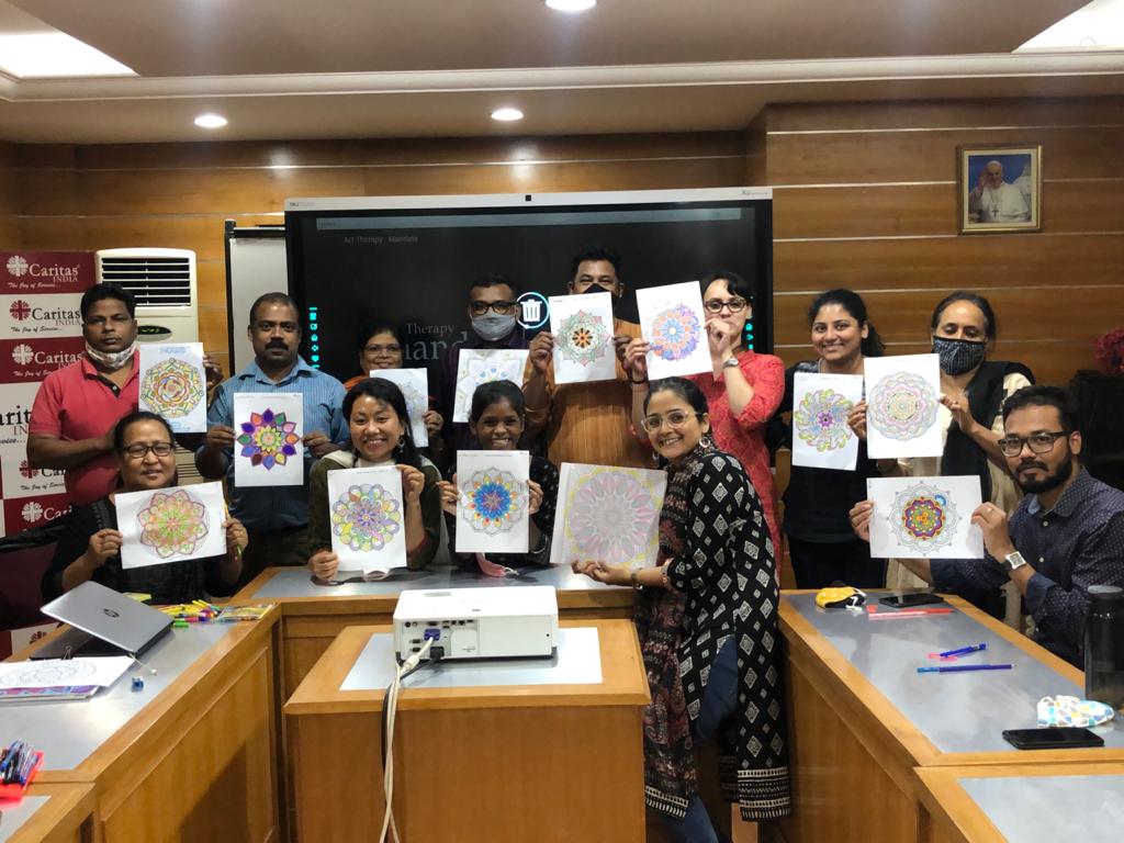 On the 2nd Day, In the presence of His Grace Archbishop Sebastian Kallupura, Chairman of Caritas India Be CALM – the psychosocial desk unveiled the Mental Health Bulletin Board at CIHO on 05th Oct 2020. This visible space has been created at the office in order to acknowledge and recognize the efforts that the new desk would take to mainstream the dialogue of mental health at the workplace is ensured. On the occasion, the Chairman briefly shared a human interest story that he overcame during the pandemic of a boy who lost his job during the lockdown period in Mumbai and how he was mentally stressed which was addressed by one of the partnering organizations in Bihar after he returned back to his native. He stressed that the desk of Be CALM has been initiated at a very important time in Caritas India as a new intervention in the New Normal which can be of assistance to thousands of such human-interest stories in the days to come. The wellness board would be a place for all employees to share and talk about Mental Health during the days at work.