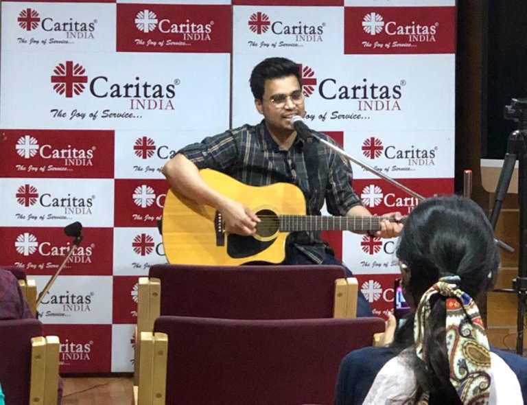 On the 05th Day of the Mental Health Awareness week, BE CALM reached out to a community to promote the space of having a dialogue on mental health openly by spreading the message through music. Pranav Nair a freelance psychologist and music artist, as a volunteer partnered with Caritas India for an activity of music outreach of creating mental health awareness and sensitizing the participants about the toll-free number of BE CALM which anyone could call who needs the support of psychosocial intervention. It was the first act of community outreach during the pandemic organized by the desk in a community centre in Delhi where one of the partners of Caritas India, Chetanalaya has been working in the field of community development.