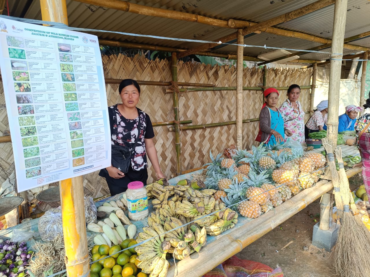 Currently, 72 women from 12 targeted communities are consistently selling their agricultural products at the Rural Organic Market. Mrs. Rokosenuo, FPA stated that we provided a village roaster to our farmers to sell their farm products so that all farmers could benefit from marketing. As a result, 12-17 varieties of vegetables, NTFPs, and handicrafts were found in the market. Possibly by establishing a marketing shed, farmers benefit from and are exposed to the marketing system.