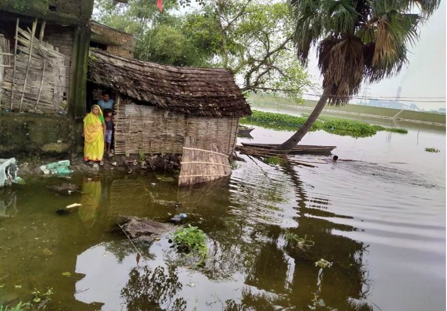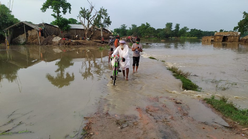 “I was at home when flood water came from the northeast direction. It was noon, suddenly I heard a noise from people and my friend Jeevika didi, asked to evacuate as soon as possible as a heavy wave was supposed to enter the village. Before I could do something, the water rushed in up to my waist. Without wasting time, I took my goat on my back and took my children and a few of my utensils and reached the embankment”, shared Laxmi Devi from Bahadurpur village in Muzaffarpur.