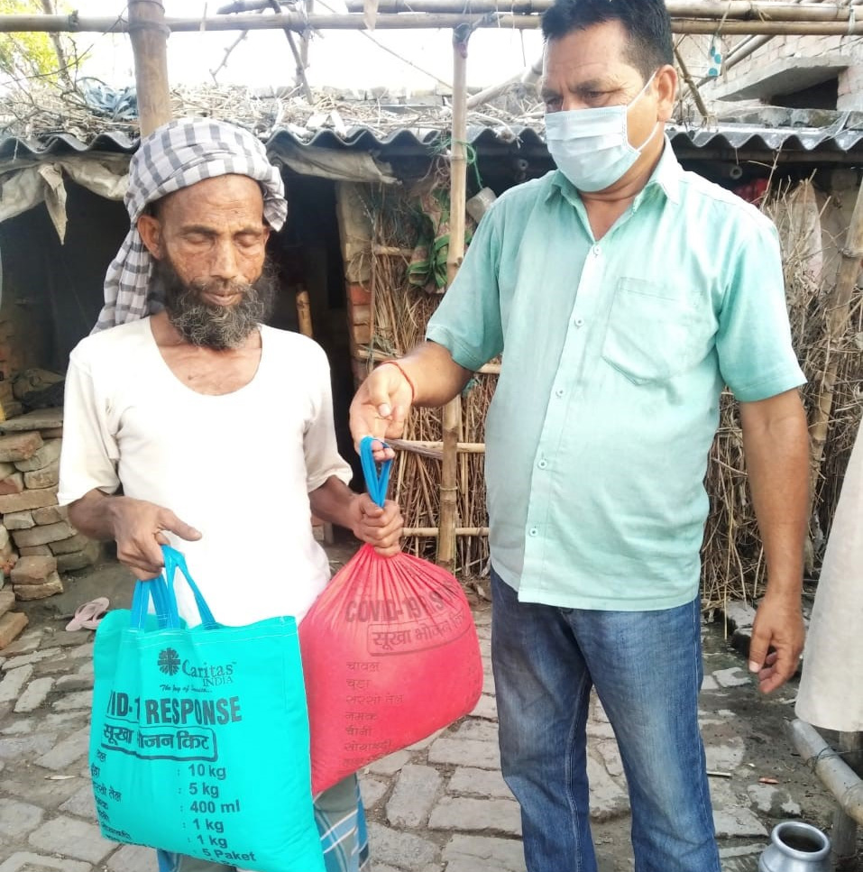With the Lockdown being imposed and no moments as suggested by the policymakers, he was unable to move around and make a living for his family. With the daily need to fulfill, little time he had to think of seeking the assistance of registering himself with PDS or getting himself a disability certificate. Suffering on a daily basis since the time of the lockdown without being able to support his family, FRT (Field Response Team) members of the COVID 19 task force of our partner (MDSSS Muzaffarpur) identified him as a potential vulnerable individual and family who requires the support that Caritas India was providing during the current health emergency.