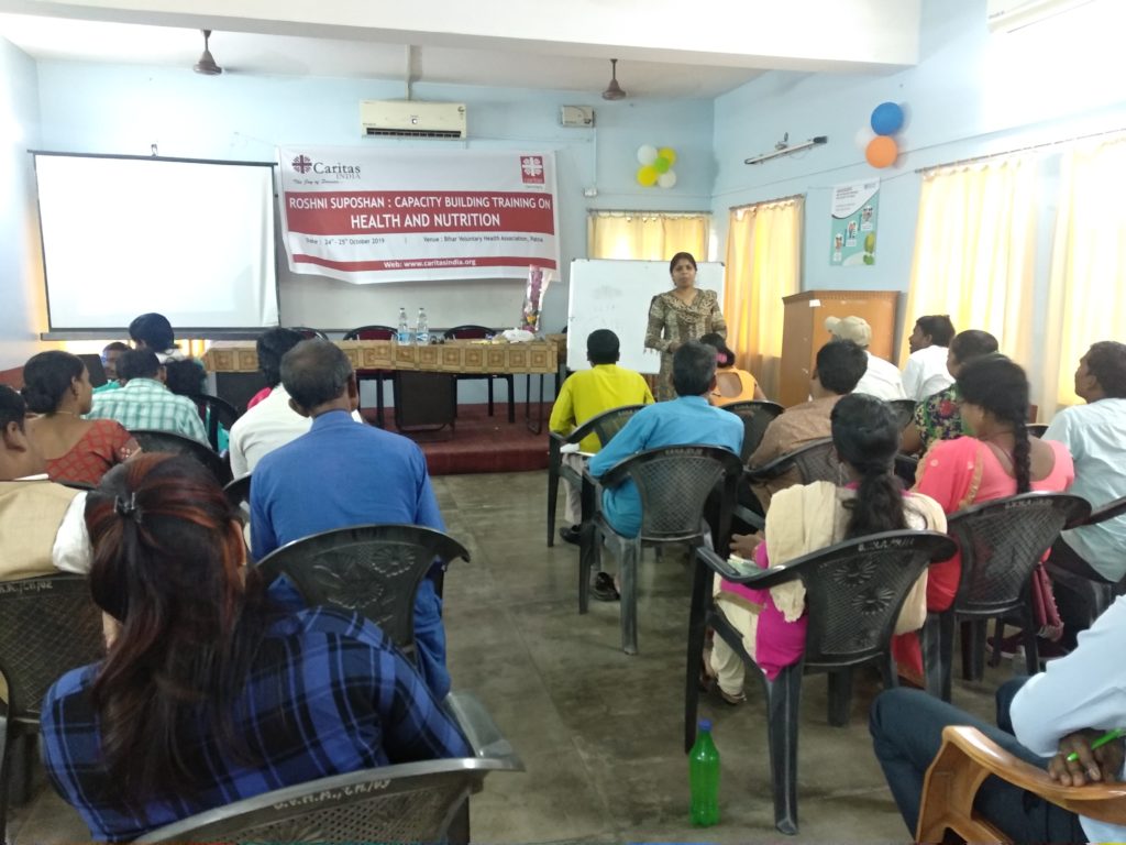 Caritas India has organised a three days capacity building Training from October 23-25, 2019 on Health and Nutrition for the program participants of Saharsa, Araria, Purnea, Madhepura, Rohtas, Madhubani and Munger at Patna. Program Coordinators and Field Staff of the programme were trained on the Right to Education and Nutrition.