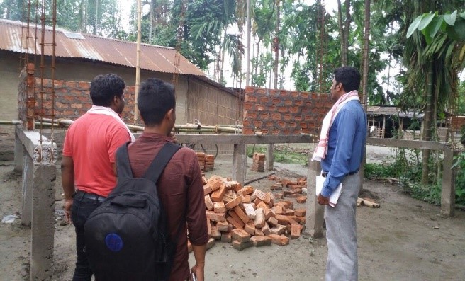 The construction site of houses at Morigaon was visited by Manager for Community Initiatives, United Way Bengaluru, Arogyaraju to review the progress in the field on May 7-8, 2018. He also interacted with the women beneficiaries who have received handlooms and yarn as an alternative livelihood. The houses will have sufficient provisions of living space with comfort, fresh air, protection, privacy and security for the people.