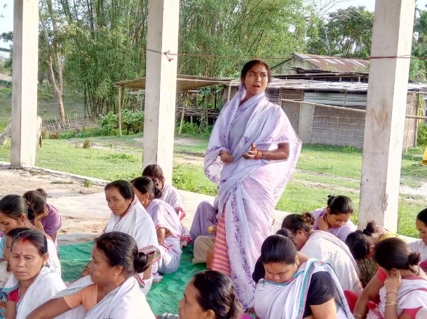 Around 40 women beneficiaries from Palahjuri village expressed their gratitude by welcoming Arogyaraju and presented Gamusa (traditional cotton towel woven from the yarn provided by the project). The women expressed their happiness for getting such support. They shared that in their entire life govt has been promising but not been able to provide support to this extent. They also narrated the flood situation and how the shelter and toilet would help them during flood period and even during dry season.