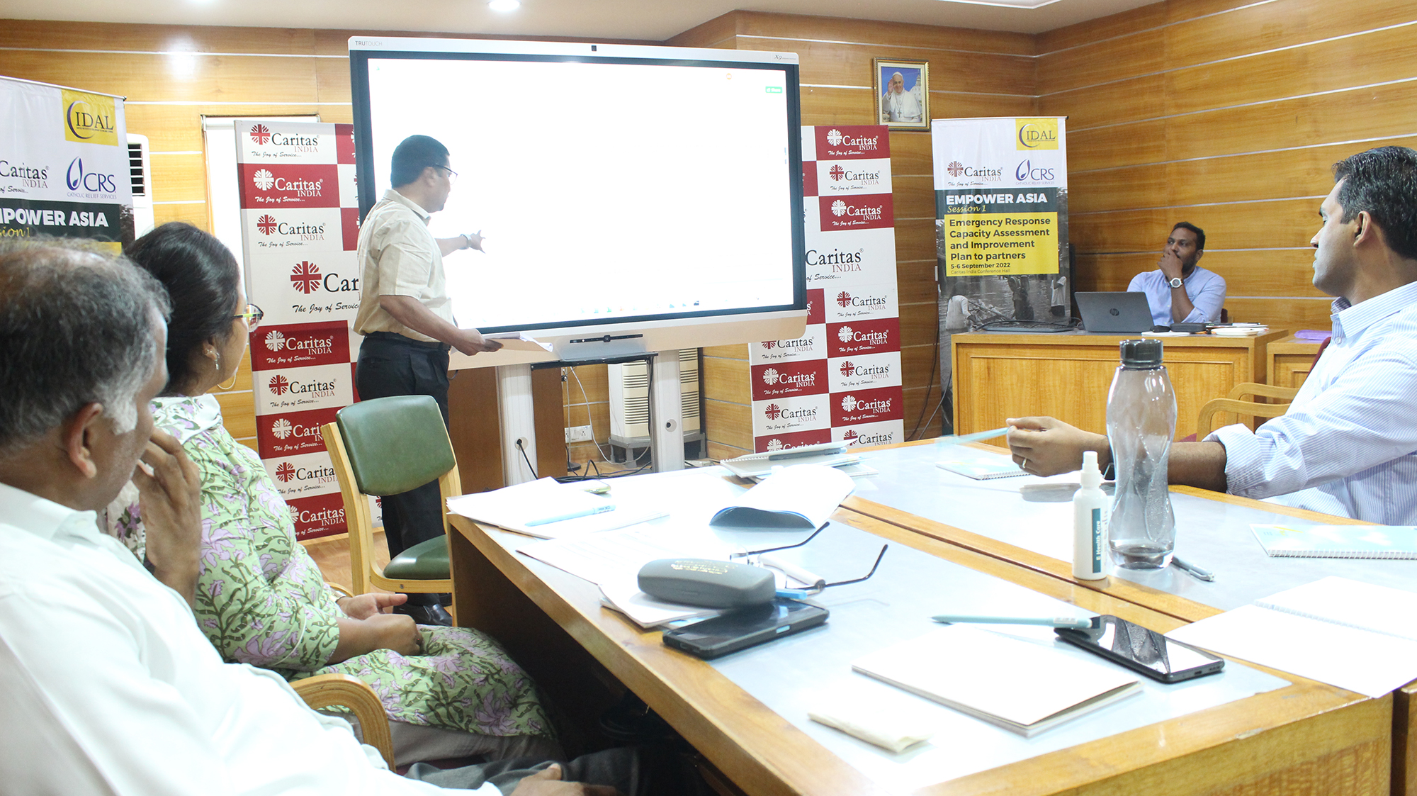 In a training program in New Delhi, Caritas India and Catholic Relief Services assess the partner organisations’ capacity enhancement needs for designing improvement plans for building local leadership in emergency response.
