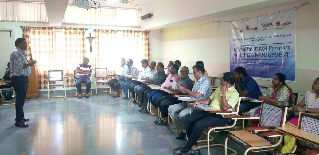 EU Peach Volunteer Management workshop conducted by Caritas India on October 6-7, 2017 at Bengaluru brings together 22 participants from 12 partner organisations to prepare and manage the volunteers in their respective organizations starting from preparing the organization for volunteers to supervision and monitoring them.”