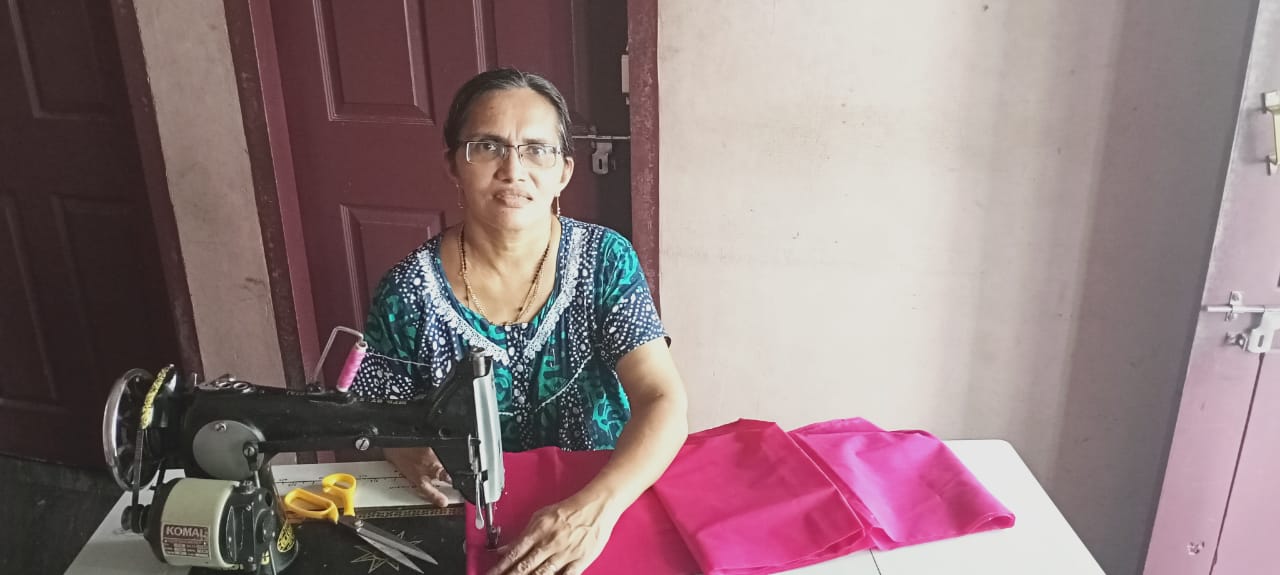 For the past 4 years, Lincy Leslin, (52), was suffering from blood cancer. Her husband used to work as a daily wager to take care of family, children education and the medical expenses of Lincy. The Covid-19 lockdown has crippled their income and increased their vulnerability. Lincy used to support her family by stitching nighties, blouses and school uniforms for the neighbouring families and shops with her old sewing machine