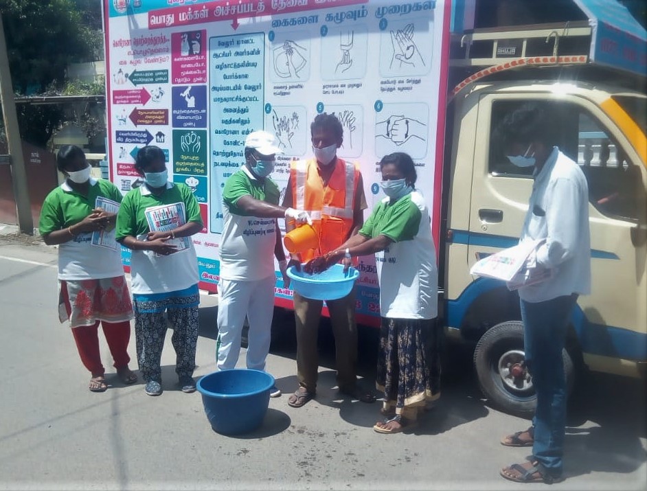 Other than spreading awareness on COVID-19, partners have also been engaged in distribution of masks and sanitizers in the project locations. Various women groups and tailoring students have engaged themselves in making masks due to its unavailability in the market. Around 4,28,850 (Approx Half a Million) masks have been distributed to Government hospitals and communities across India. Handwashing points have also been put up on the side of the streets.