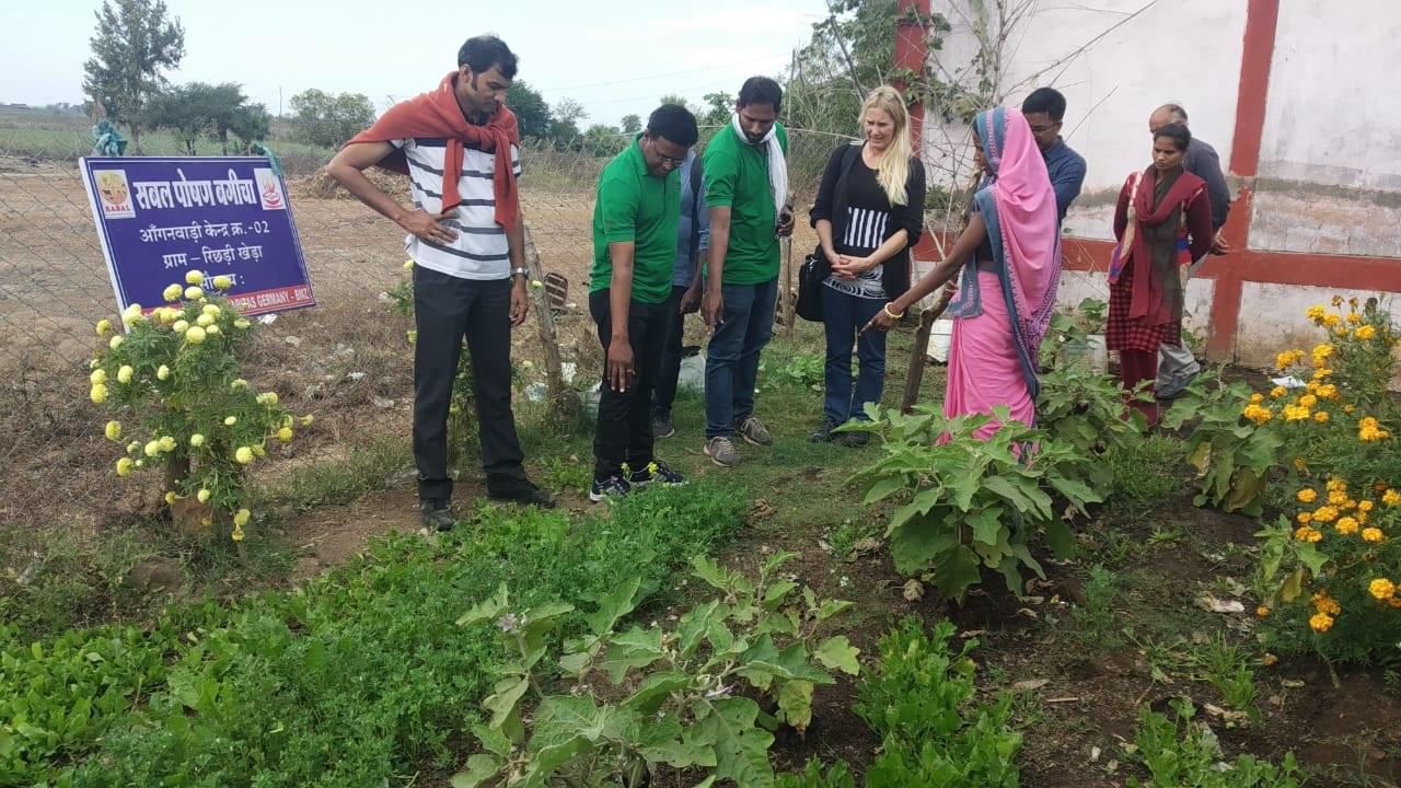 Martina also took an opportunity to visit the various sustaining model of nutrition gardens set up by the collective members. She was happy to see how the ladies are voluntarily fencing and protecting the gardens with locally available resources. A malnourished child who has recently stepped down to normalcy demonstrated 7 steps of handwashing technique to Martina using the Sabal low-cost model of handwashing station. At Richdikheda, the Anganwadi worker showed her nutrition garden model developed with the support of Sabal and also shared how it is benefitting the children and mothers with fresh vegetables.
