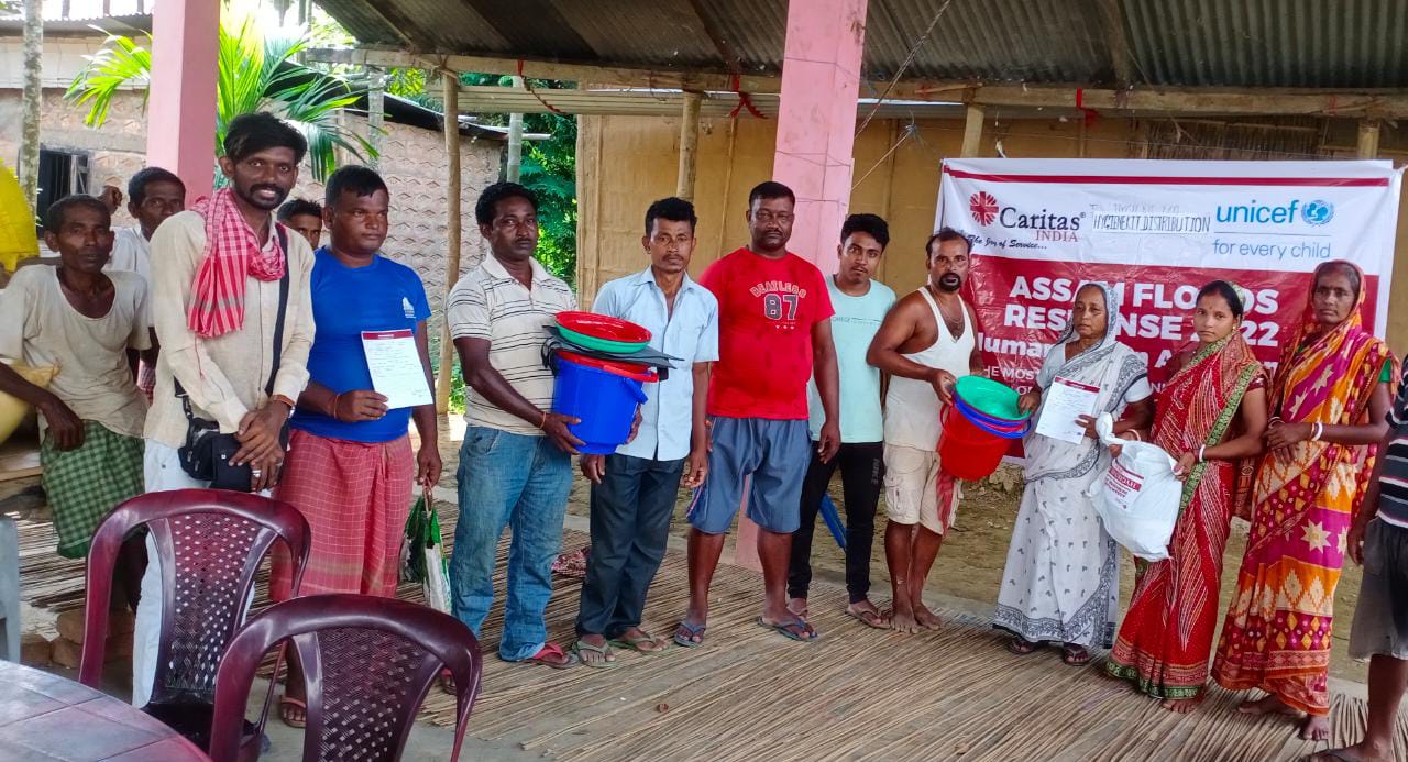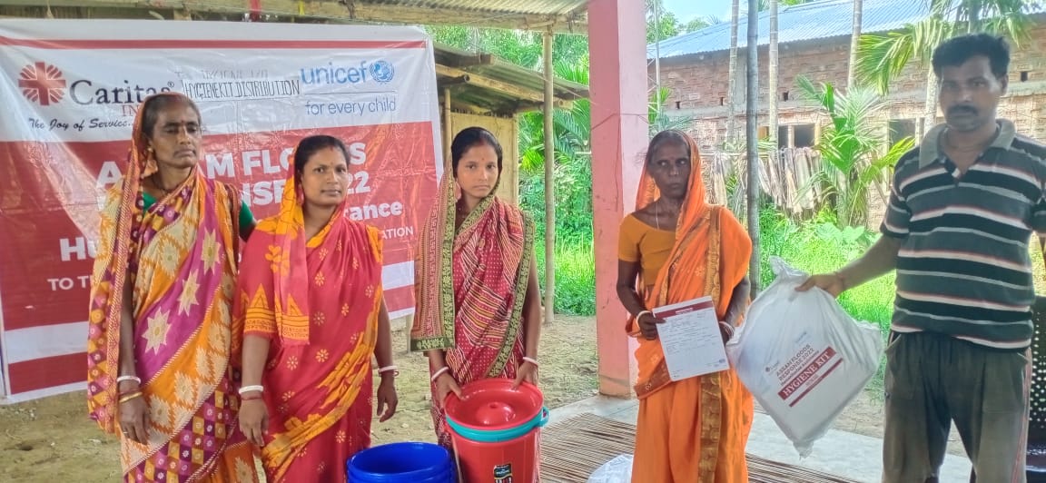Caritas India continues her humanitarian response to reach the most vulnerable population in the flood-affected districts of Nagaon and Barpeta with the support of UNICEF. The response specifically focuses on the water, sanitation, and hygiene (WASH) needs of the communities and includes a range of activities such as cleaning of handpumps, rehabilitation of damaged water sources, installation of emergency community level water filters and temporary toilets, and Public Health Promotion (PHP) sessions, along with the distribution of Hygiene/Dignity kits and household level water filters.