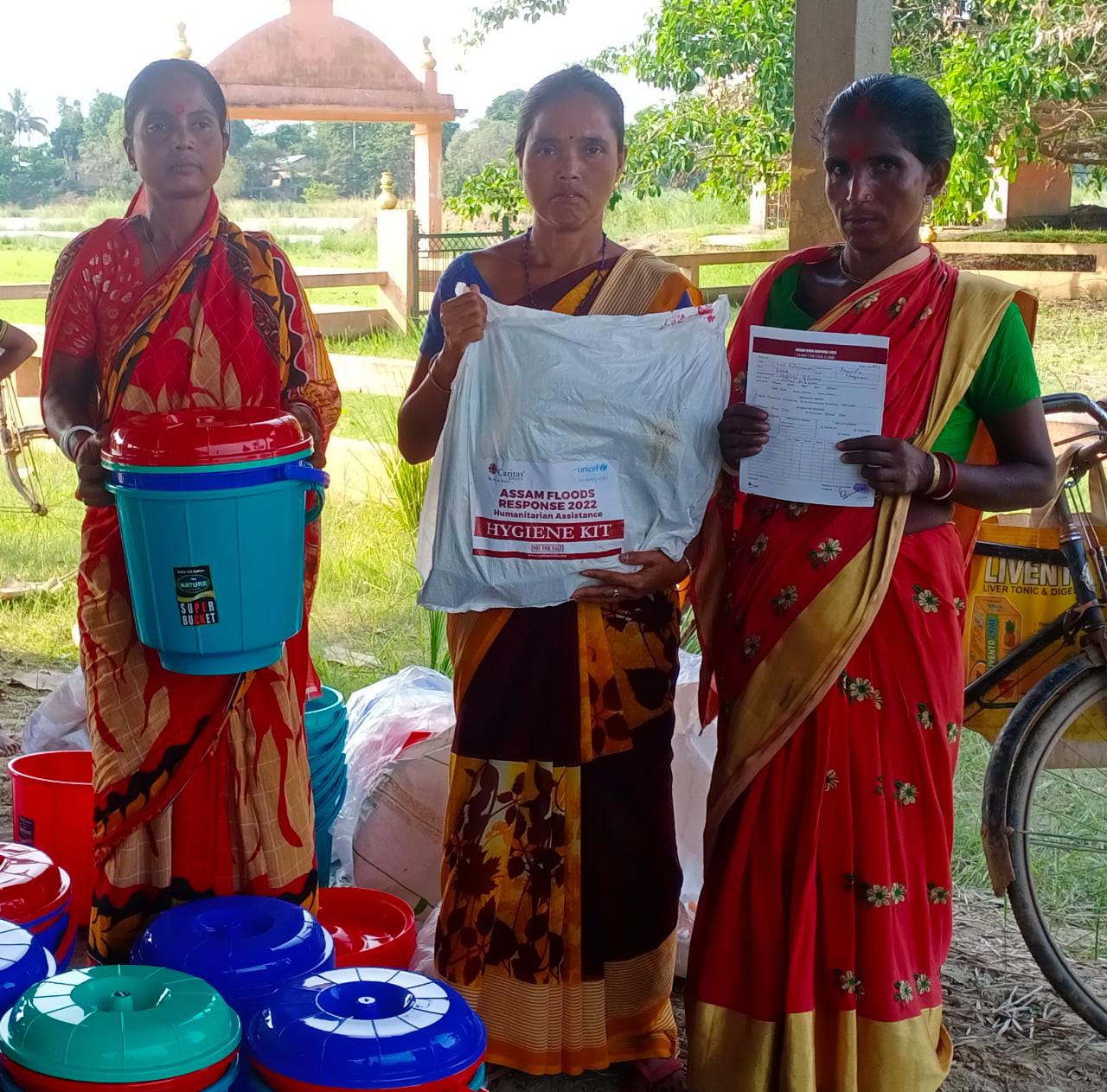 In Nagaon, 492 kits in total have been distributed in the 7 villages of Simologuri, Madhapara, Misimari 1, Misimari 2, Morisuti and Puthimari. In Barpeta, Cenimari, Malipara, Barbhita, Bandali, Bandali Reserve, Balidhari, and Jatradia villages 361 kits have been distributed. The intervention plans to support 1000 most affected families with hygiene kits to practice key water, sanitation, and hygiene behaviour.