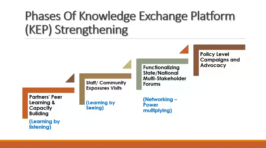 Dr. Saju MK, Caritas India Zone Manager for West shared in detail about the various phases of KEP strengthening where the KEP team will initiate the exchanges with Partners’ Peer Learning & Capacity Building – Learning by listening. “During the pandemic times it is difficult to have joint meeting physically and the only mode of exchanges and learning is confined to the virtual platform so we will take the opportunity to make the best use of the platform and develop our skills and learnings through listening,” added Dr. Saju. Once the pandemic situation is normal, the next phase will involve Staff/Community Exposure Visits – Learning by Seeing which will give an opportunity for better learning and understanding.