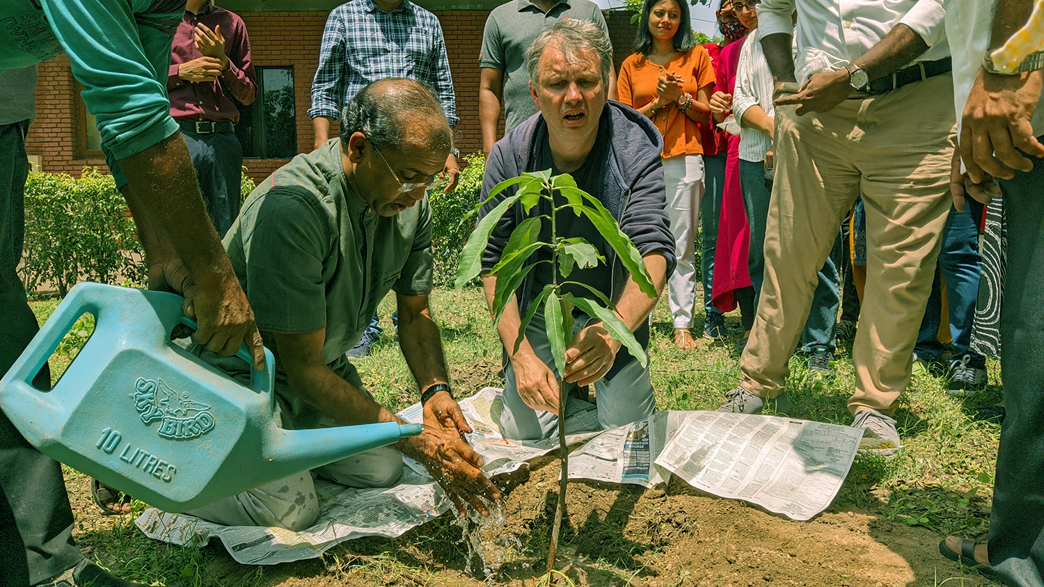 Caritas India Head Office Delhi commenced the celebration of World Environment Day 2022 by planting a mango tree sapling on the premises of CBCI. The guest on this occasion, Mr Thomas Preindl from Caritas Austria did the honours of putting the sapling in the ground along with assistance from Fr. Paul, Executive Director, Caritas India in the presence of the entire Caritas head office staff. Later in his address, Fr. Paul spoke about the climate crisis inflicting the mother earth right now manifested in the form of unprecedented weather conditions. He urged the need to think in long term by planting in mass to help alleviate the consequences of Global Warming.