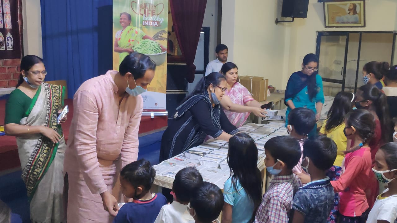 The launch accompanied by food distribution under Caritas India’s Community Kitchen “Anand Bhoj”. It is a noble initiative of Caritas India and its employees to prevent vulnerable people from going hungry. Caritas Team and Volunteers prepared and distributed food packets to more than 70 children from the Non-Formal education centres and few packets were distributed to the street-connected children.