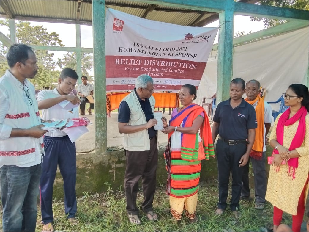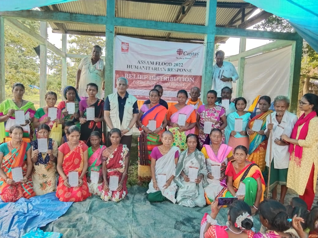 He also visited Jaithera village of Hojai district on the next day, where he distributed finance assistance and shelter repair support family cards to 20 families whose houses were fully destroyed in the floods. He also paid a visit and interacted with the household members whose houses were damaged by the calamity.  Caritas India has reached out to the mixed communities of ST, SC, OBC and minorities of remotest villages of West Karbi Anglong and Hojai districts and where no other NGOs have reached so far. These people are residing along the Kapili river which brought this devastating flood.