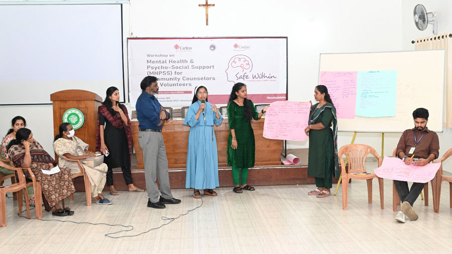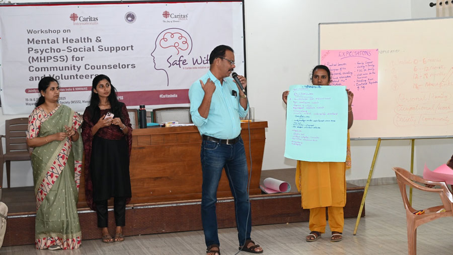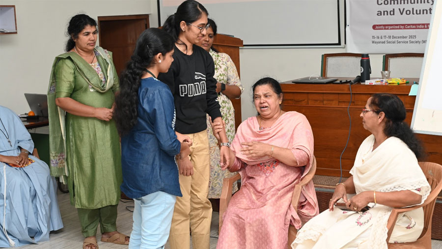 Recognising that disasters leave lasting psychological scars, Caritas India, with the support of Caritas Internationalis, moved beyond physical reconstruction to prioritise mental health and psychosocial support. Under the Safe Within, Reconnect Wayanad & Vilangad project, the second phase of its humanitarian response, Caritas India partnered with the National Institute of Mental Health and Neurosciences (NIMHANS) to strengthen community-based psychosocial care in affected areas.