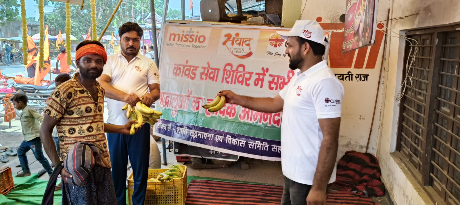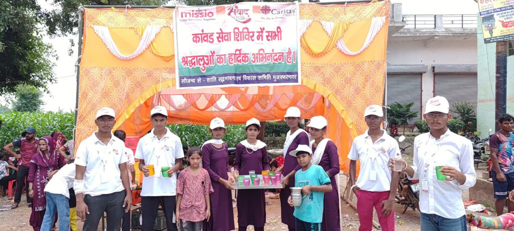 Caritas India, with Shanti Sadhbhavna Vikas Manch, demonstrated solidarity with Kanwar pilgrims through a three-day camp in Saharanpur and Muzaffarnagar districts of western Uttar Pradesh. The initiative aimed to serve pilgrims traveling to Haridwar from various states, including Bihar, Maharashtra, Jharkhand, Punjab, Haryana, and Madhya Pradesh. Over fifteen thousand pilgrims were offered fruits and energy drinks by volunteers, Peace Club children, Youth, Citizen Forum members, and the newly formed Shanti Sadhbhavna Vikas Manch.