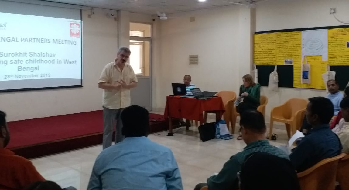 Caritas India(CI) in association with Caritas Germany organized a one day West Bengal Partners Meet on 28th Nov, 2019 to promote “Safe Childhood – Surokhit Shaishnav”.  West Bengal has seven per cent of India’s total child population and children represent 35 per cent of the state’s total population. The state is home to 32 million children, of whom 73 per cent (23 million) live in rural areas and 27 per cent (8.7 million) live in urban areas.(Census 2011). Although West Bengal features at the seventh spot in the top 10 States with high rates of child labor, there is a shocking 337 per cent increase in the number of marginal girl children (aged 5-9 years) in urban areas out of 5,50,092 children (53 per cent increase in child labour’, The Hindu, Kolkata, June 26, 2015).  Thus, this meet was organized in order to discuss and strategize the action plan to create a safe childhood across West Bengal to combat child labor and increase in cases of violence against children. This meeting was attended by several CI West Bengal Partners, CACL (Campaign Against Child Labor – WB Chapter) and members of Caritas Germany.