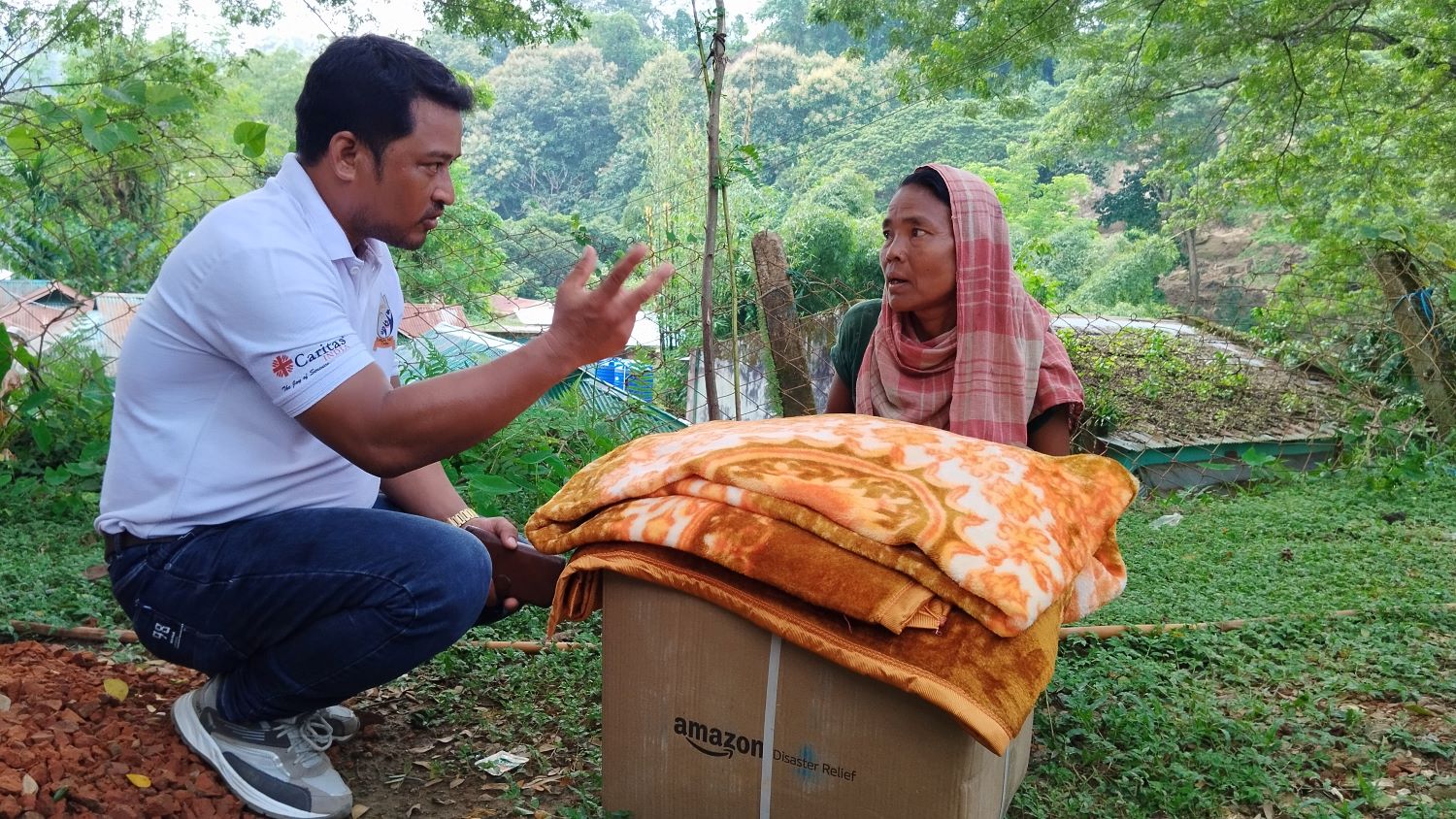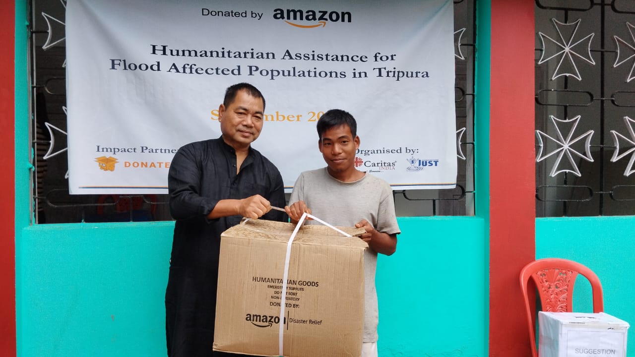 In collaboration with Janna Unnayan Samiti Tripura (JUST), Caritas India has mobilized immediate relief efforts in the Gomati district, one of the hardest-hit areas. Recognizing the urgent need for shelter and hygiene supplies, Caritas India successfully provided 455 PP Shelter Kits to the most vulnerable families across 13 tribal villages. These kits were generously supported by Amazon through Donatekart, showcasing a powerful partnership aimed at making a tangible difference in the lives of those suffering.