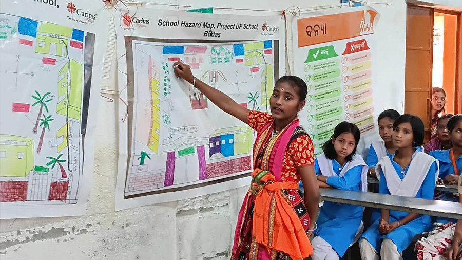 The Caritas Japan team, led by Ms. Akiko Hashimoto and Mr. Ken Yamada, traversed four model villages within the Gram Panchayats of Poirasi, Karapada, Betagadia, and Bodas. The highlight of the visit was the high level of community ownership. Village Disaster Management Committee (VDMC) members and Sarpanchs confidently demonstrated their locally developed Village Disaster Management Plans (VDMPs).