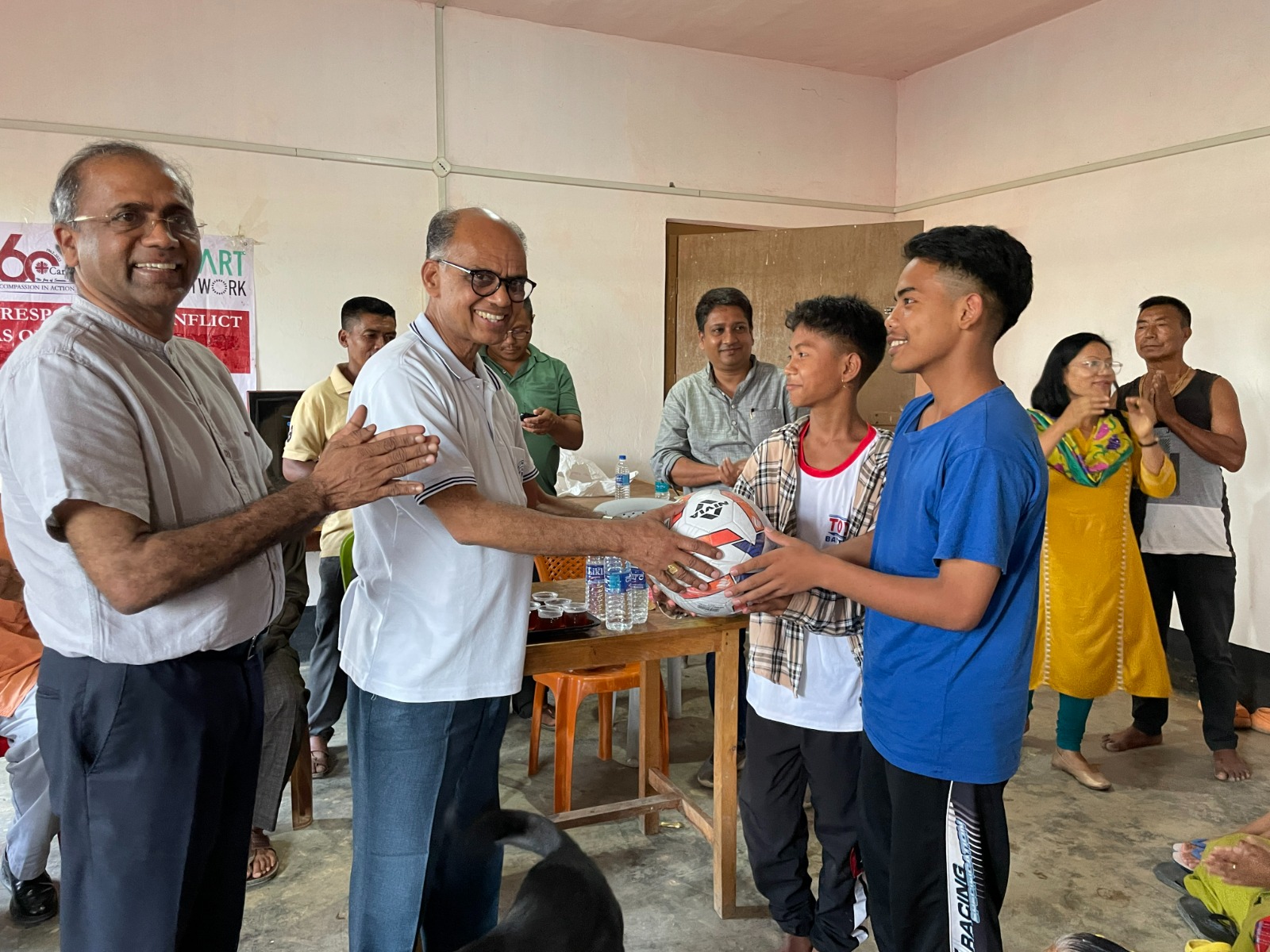 Children and teens are most affected in such situations and tend to develop anxiety and trauma. Most Rev. Sebastian and Fr. (Dr.) Paul interacted with the children at the camps and presented football to the girls and boys to keep them happy.