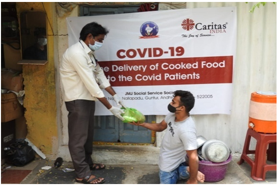 “Volunteering has changed my mindset and has motivated me to look at life differently”, Shubham, Caritas Samaritan. Mr. Shubham, one of the volunteers engaged in Dayasagar Hospital in Amravati in Maharashtra Shubham helps the treatment center in taking X-Rays, providing food and hot water to the patients, distribution of medicine etc. He is not scared of Covid-19. He protects himself by wearing all the protective gear like a PPE suit, mask, gloves, and face shield.