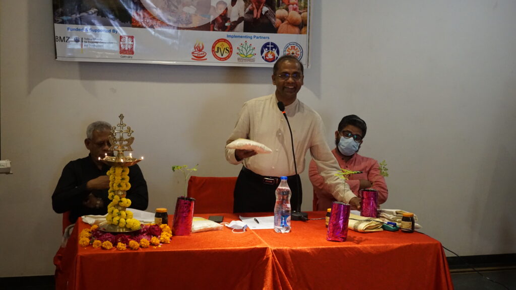 Fr. (Dr) Paul Moonjely, Executive Director of Caritas India in his inaugural address expressed his vision to create each Korku family BMP Parivar (Banana Moringa Papaya family) which can help to address the nutrition needs of their family members. Emphasizing the sustainability of the programme results he shared to follow the principle of 5Cs;