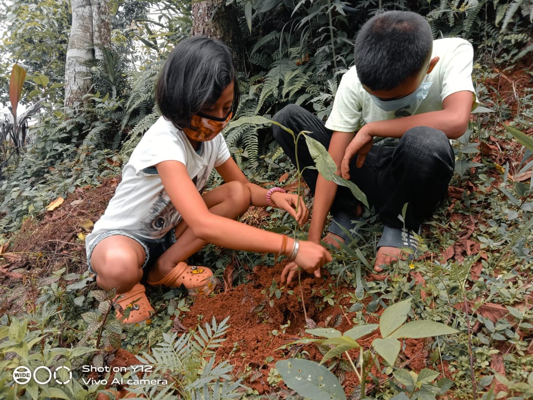 Last year, the Child Club members celebrated “Ecosystem Restoration” by adopting a wasteland and named it ‘Titanic View Point’. This year on 5th June 21, Children in collaboration with Gram Panchayat of Nim, Tea Garden manager, CBO, and Vigilance committee members fenced the wasteland and planted 40 saplings.