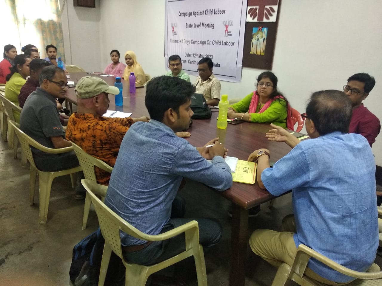 A similar meeting was organised by Caritas India in its Kolkata office in collaboration with WB CACL on 12th May 2023 to spell out its plan and concretise the roadmap for a culmination day event. This meeting was attended by Malda Sohogojita Samity, Bal Suraksha Abhiyan Trust, Baikanthapur Tarun Sangha, Nari O Sishu Kalyan Kendra, SPMUS, Development Professional, DRCSC, Garan Bose Gram Bikas Kendra, Kolkata Mary Ward Social Centre, TdH Swisse, Save the Children India and Matrfat had participated in the meeting. As special guests for the meeting were Consultants from the West Bengal State Commission for Protection of Child Rights (WBSCPCR) Ms. Susmita Chandra and Mr. Raja Das.