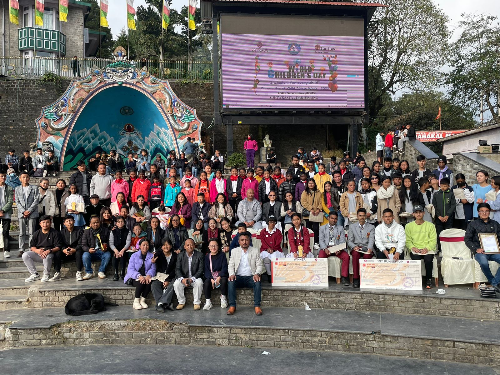 Considering the upcoming school exams, the Child Rights Week celebrations were inaugurated on 13th November by Anugyalaya DSSS, at Darjeeling Chowrasta- the town’s main tourist hotspot. A mega children’s day event was organised in collaboration with District Child Protection Unit and Yashshree Foundation themed “Inclusion of every child”. 200 children from 7 schools and Darjeeling NGO network partners took part in the event. A wide range of performances was held including, Poomsae (Taekwondo), Sit and Draw, Open Poem recitation, Talent Hunt Show, and various theme based cultural programmes including, skill cum circus, songs based on child labour and child sexual abuse, as well as a science exhibition. Child leaders through the medium of theatre showcased child labour, child marriage, and child sexual abuse.