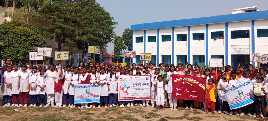 At Samserganj Police station under Dhulian Ward -19, Murshidabad district, Suprava Panchashila Mahila Udyog Samiti ( SPMUS) Children Club members commemorated Children’s Day with police personnel. A rally was taken out in the area to spread awareness among community members, given the region’s high frequency of child marriage, child labour and child trafficking incidents. Representatives from Dhulian Municipality also took part in the event to send a message against all forms of child exploitation, promising the strictest punishment against those who commit violence against children. Local news channels too highlighted the effort of child leaders of SPMUS.