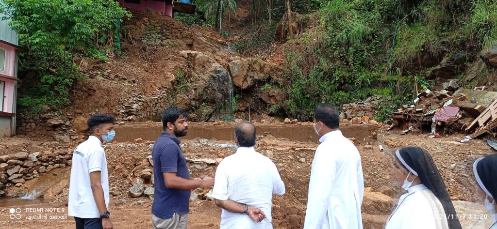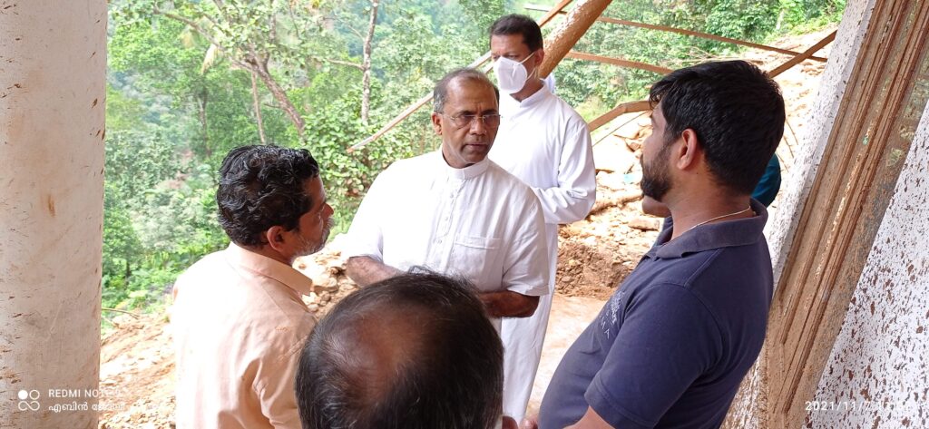 Caritas India’s Executive Director, Fr. Paul Moonjely visited Kerala to understand the exact situation and the immediate needs of the people who are affected in the Kottayam district of Kerala. He visited Koottickal village in Kottayam district where almost 13 people lost their lives due to landslides triggered by heavy rains in the Centre part of Kerala. Fr. Paul interacted with the victims and listen to their real situations, problems and needs of the time. The villagers shared their feelings, emotions and needs with Fr. Paul. He listened to them carefully and comforted them with hope. Caritas India is planning to distribute kitchen utensils, Non-food items and educational support to the children who are affected by the flood and landslides at Koottickal village in Kottayam district, Kerala.