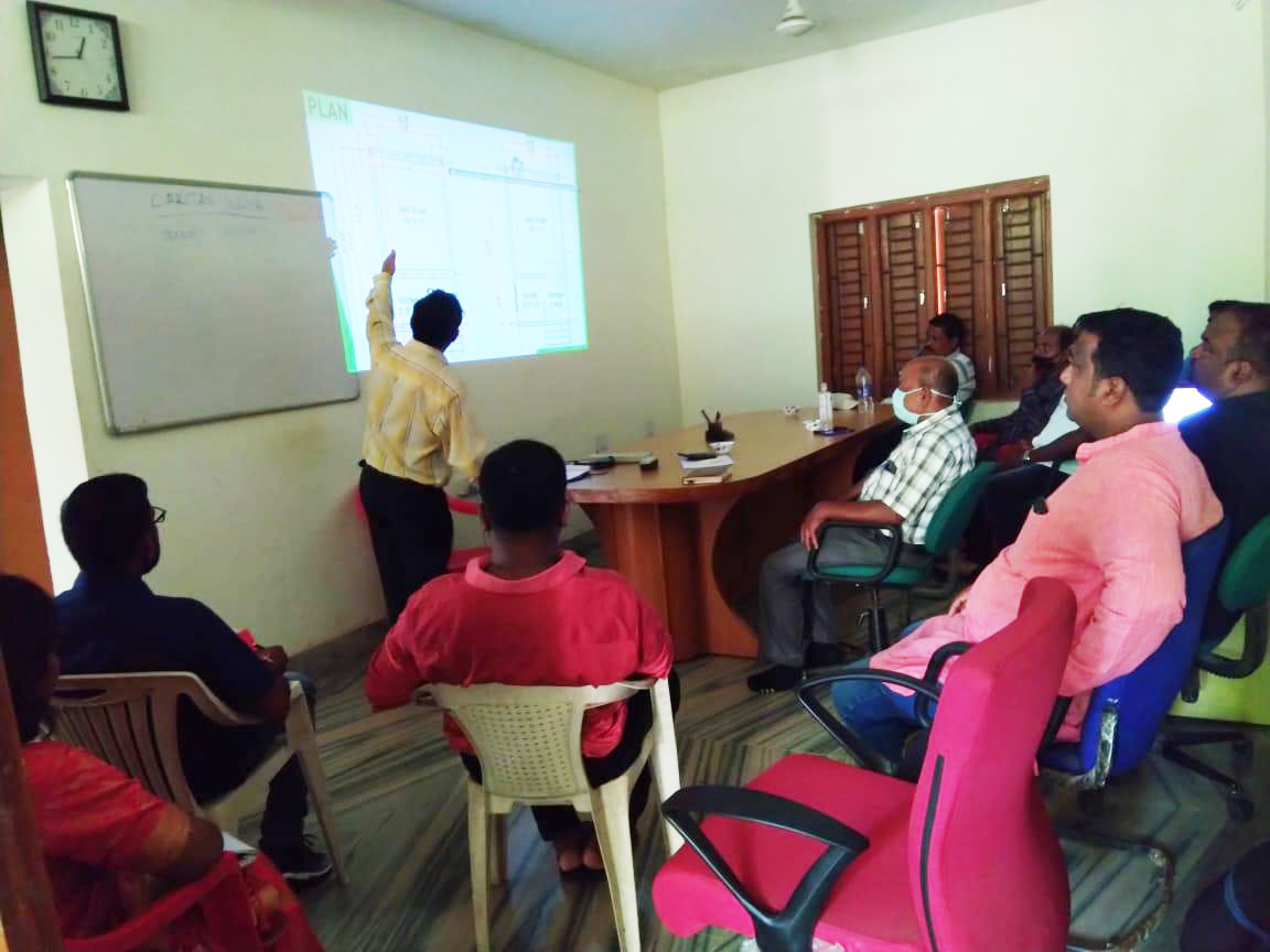 An orientation cum training program on disaster-resilient shelter (Permanent and Transitional) was organized in the State Office, Bhubaneswar on August 02, 2020. The contractor, site supervisor and project staff were part of this training program.