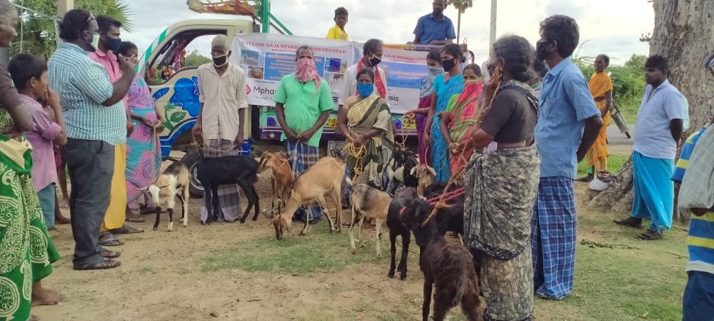 A total of 12298 livestock was lost in the cyclone mainly impacting  8.2% of  SC community people who were sustaining their lives mainly through goat rearing.  They live in the coastal villages in and around Vedaranyam block of Nagapattinam district where Cyclone Gaja hit first. With the intention of securing their means of income, the livelihood rehabilitation project focused on the concept of harnessing people’s potential to take timely and appropriate actions so as to reduce the impact of natural hazards through a process of livelihood enhancement and behavioural change.