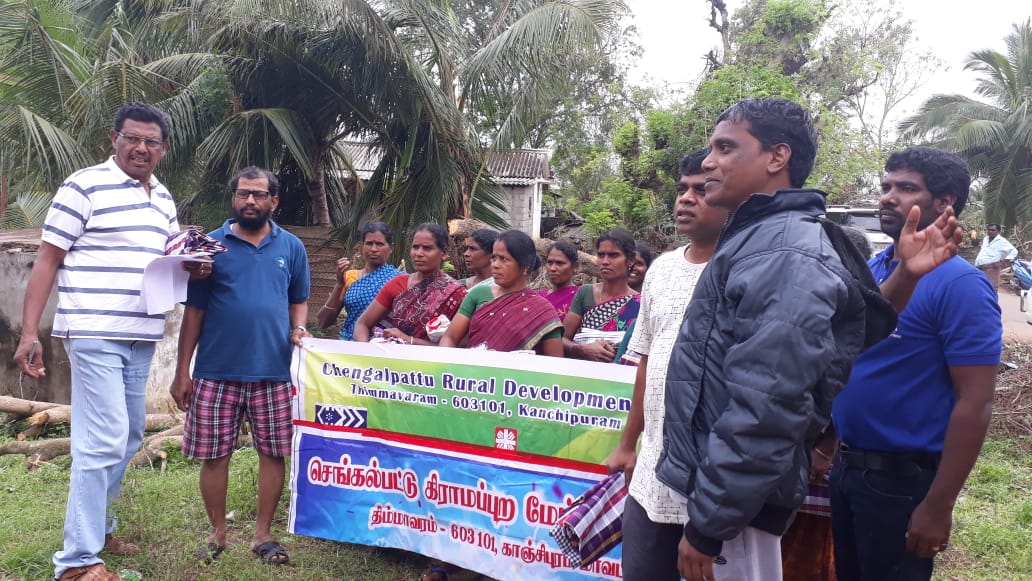 The Directors of TMSSS and PMSSS are directly supervising the relief activities in the field. The DSSS from Kottar, Kuzhithurai, Kumbakonam, Chengalpattu, Salem and Madras have sent relief materials to be distributed to the cyclone affected people. Thanjavur Dioceses working in four districts covering 184 villages with dry ration, tarpaulin, clothes, bed sheets, emergency lights, milk powder, and WaSH support.
