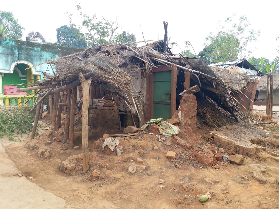 Jayanti Gomango and her husband Saiti Gomango reside in the periphery of Laxmipur village along with their children and grandchildren. Two small kuccha rooms serve as a refuge for this family of six belonging to the Soura tribe. On the night of October 11, the heavy winds and rainfall swept away the tin and smashed the humble dwelling, damaging all her household belongings.