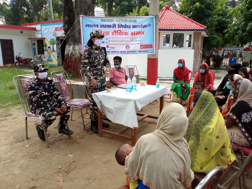 During the visit of Shashastra Seema Bal at the Indo-Nepal border forces, these women were very excited to meet and talk to the women staff of border forces. The Border forces women personnel shared their experiences of working as a part of Indo-Nepal force and tackling the Victims of Trafficking. They updated these women that there is a reservation of women candidate living near the border villages to join the SSB and encouraged that if there want that their family women should be a part of SSB as an official they can fill the form for joining at the appropriate age. The Govt. and the Border forces invite application every year from the eligible women candidates. These women were very much Inspired from this information to connect themselves to the border forces once selected. From these words around half of the mothers of young girls assured that they will surely allow their daughters to join the services.