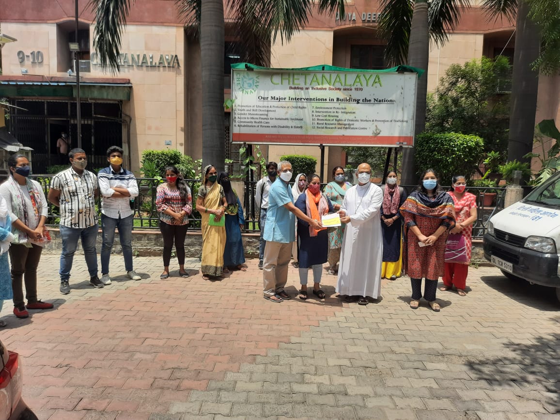 Archbishop Anil J.T. Couto, President Chetanalaya, and Fr. (Dr.) Jolly, Assistance Director, Caritas India handed over the Direct Financial Support of Rs. 10,000/- through direct Bank transfer to the families who lost their main earning members in this Covid-19 pandemic. The plan is to provide cooked food meals to 15,000 people, provide dry ration to 2800 families, financial support to 100 families, and emergency support.